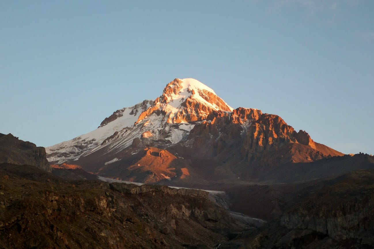 The summit is mesmerizing, especially at sunrise when its frozen peak ignites with a warm pink glow.